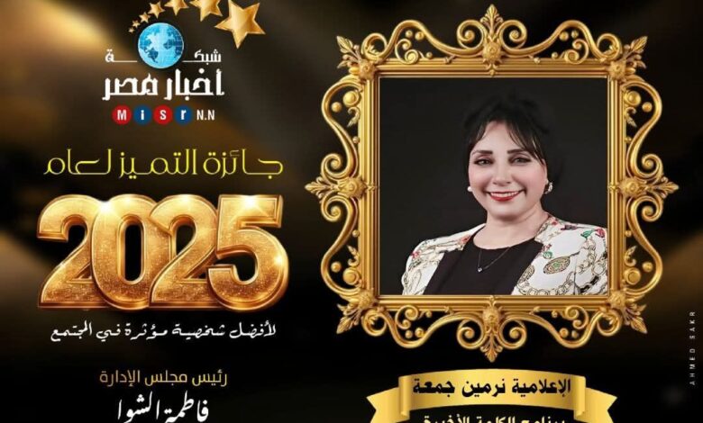 الإعلامية نرمين جمعة تحصد جائزة التميز 2025 من شبكة أخبار مصر